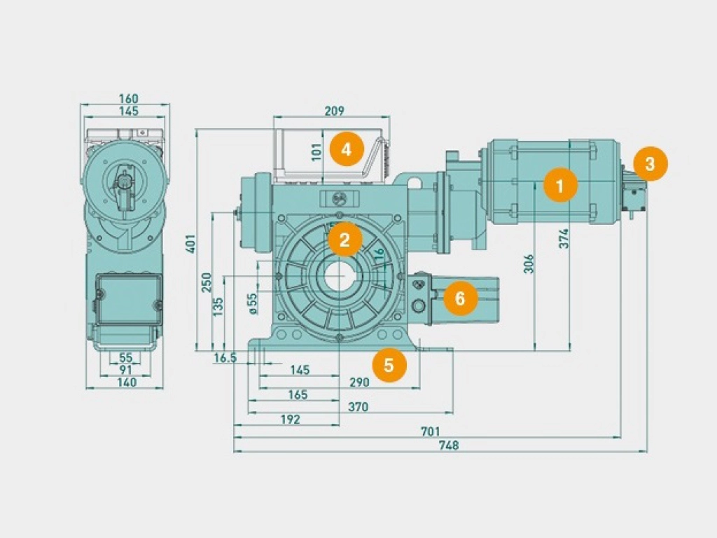 Приводы используются для автоматизации рольворот и имеют защиту от падения полотна. В редуктор встроено улавливающее устройство. Монтаж производится на вал ворот.